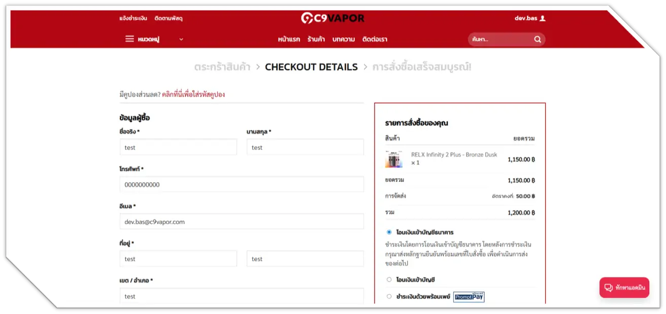 ** หากมีคูปอง กรุณากรอกคูปองที่ช่องขวาล่าง