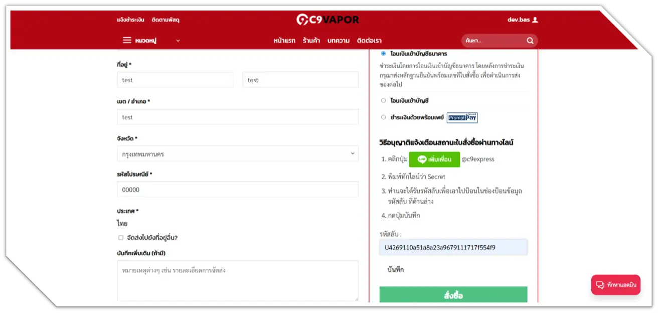9 ขั้นตอนที่ 9 เมื่อทำรายการสำเร็จ ให้ทำการแนบสลิป โดยการคลิกที่ธนาคารปลายทาง และอัปโหลดสลิปโอนเงิน ** หากเป็นสลิปปลอม แอดมินขอสงวนสิทธิ์การคืนเงินและส่งสินค้า