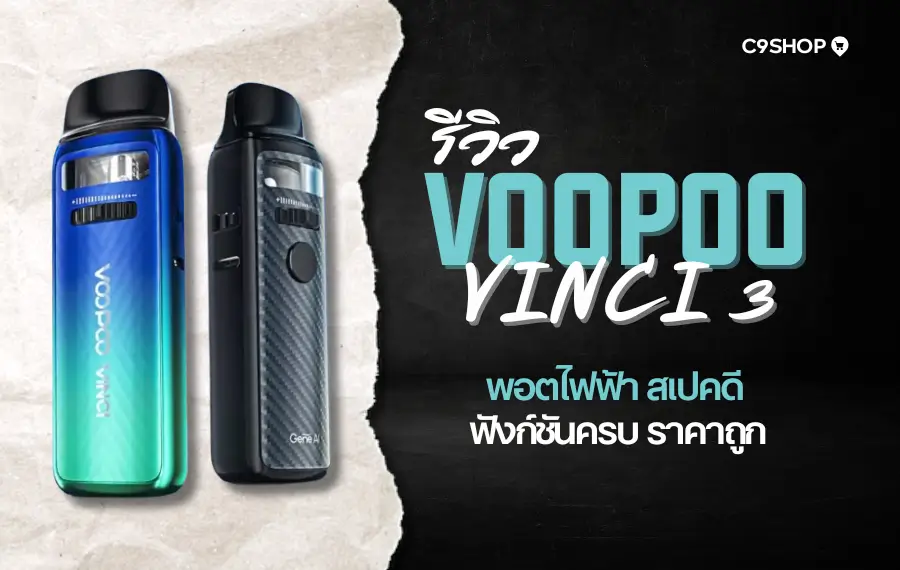 รีวิว VOOPOO VINCI 3 จะพาคุณไปทำความรู้จักกับพอตไฟฟ้าที่โดดเด่นทั้งในด้านดีไซน์ ฟังก์ชันการใช้งาน และราคาที่ไม่แพง VOOPOO VINCI 3 มาพร้อมกับแบตเตอรี่ 1800 mAh ที่ใช้งานได้ยาวนาน จอ OLED ขนาด 0.69 นิ้ว และความจุน้ำยา 4 ml ที่เหมาะกับการใช้งานทั่วไป รวมถึงข้อมูลเกี่ยวกับการใช้งานต่างๆ เช่น คอยล์ที่ใช้และวิธีแก้ปัญหาที่พบบ่อย
